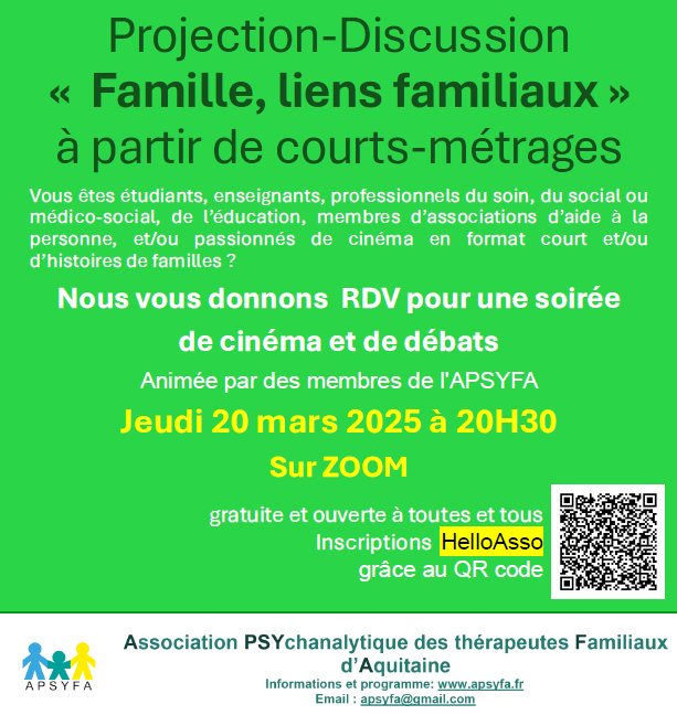 Projection discussions autour de courts métrages sur la famille : Jeudi de l’APSYFA